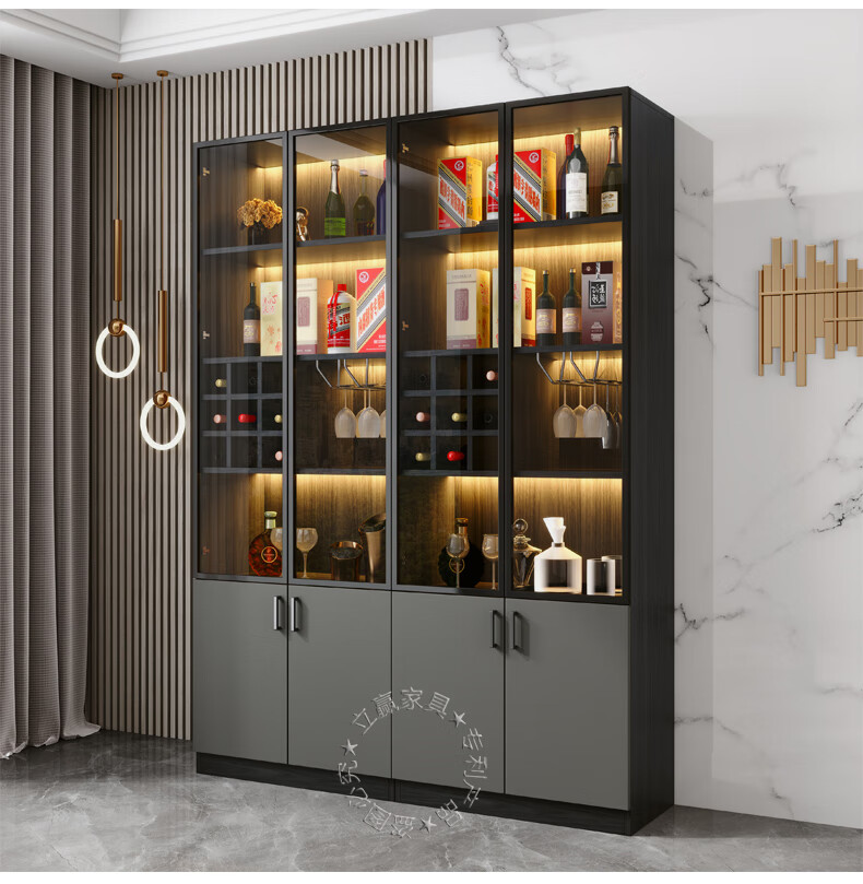 轻奢酒柜家用玻璃门简约现代客厅柜靠墙展示柜白酒柜子一体靠墙柜 30*