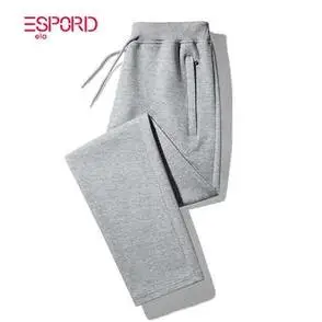 浅灰色运动裤纯棉加绒直筒卫裤男休闲裤子宽松中年秋冬季全棉长裤