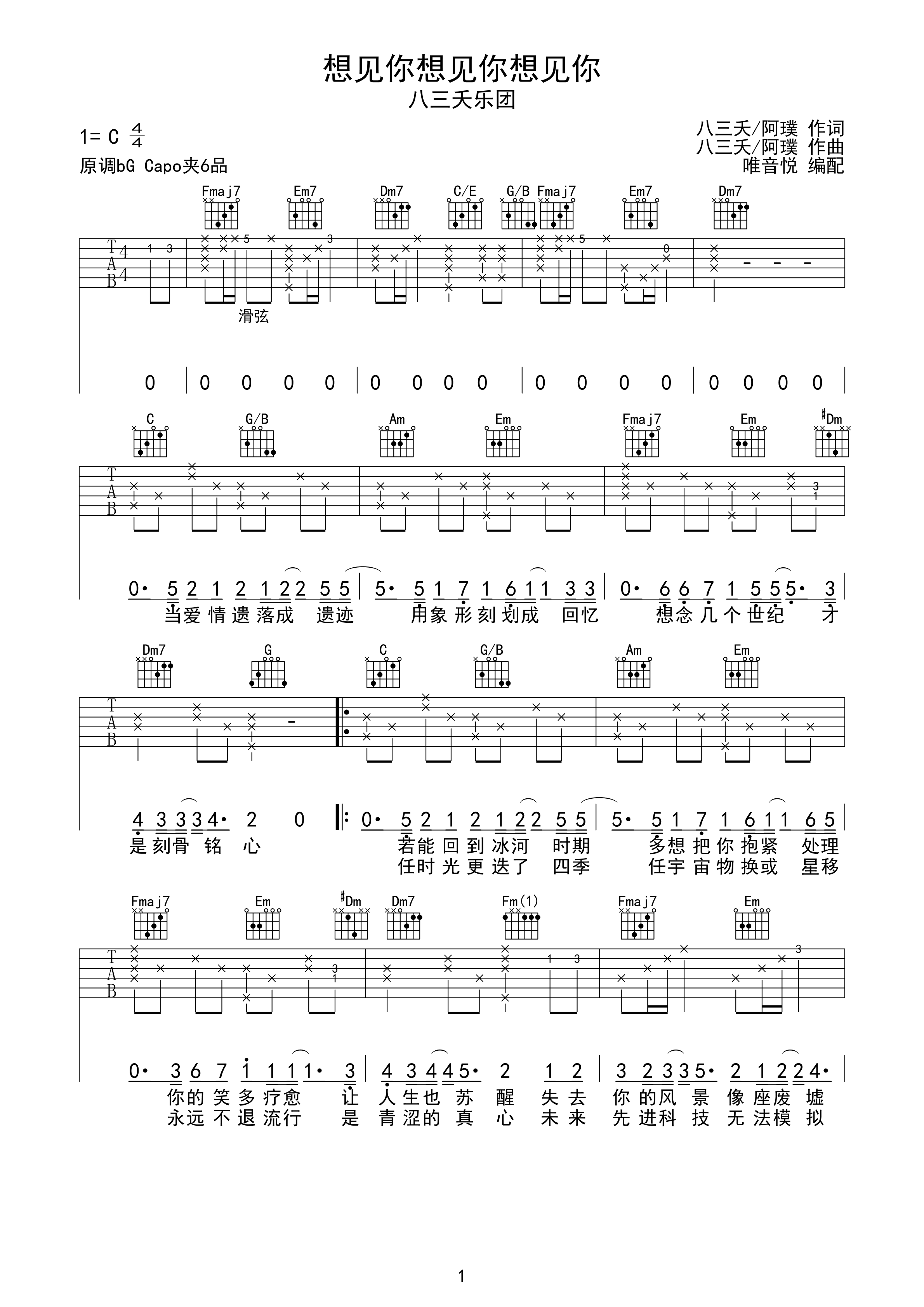 1吉他谱(图片谱,弹唱,简单版)_八三夭(831 / 八三夭乐团)_想见你想见