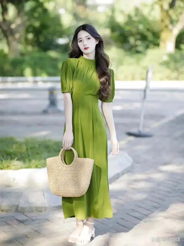 结合上绿色系的色彩,穿起来显得肤色也是超级的白皙的搭配一些精美的