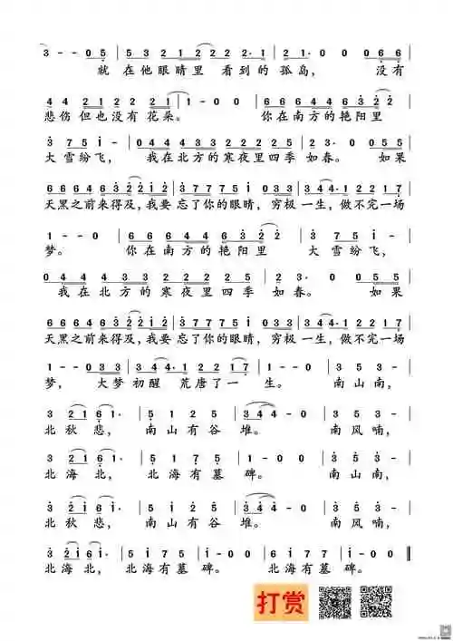 南山南歌词简谱
