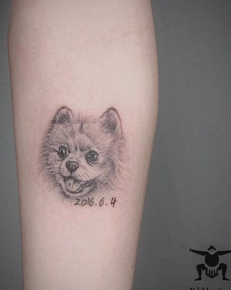 手臂宠物小狗纹身图片可爱萌萌哒