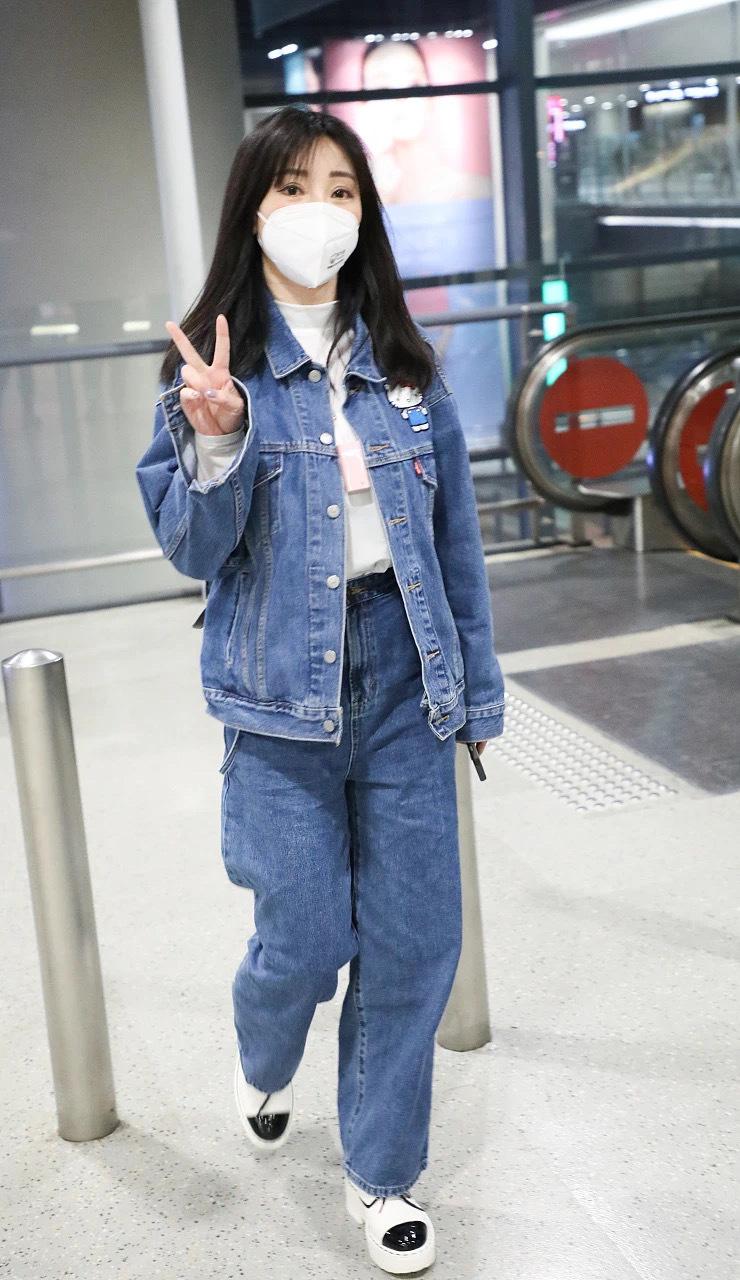 李一桐最新机场街拍,皮毛一体外套 蓝色牛仔裤,气质十足_时尚_黑色