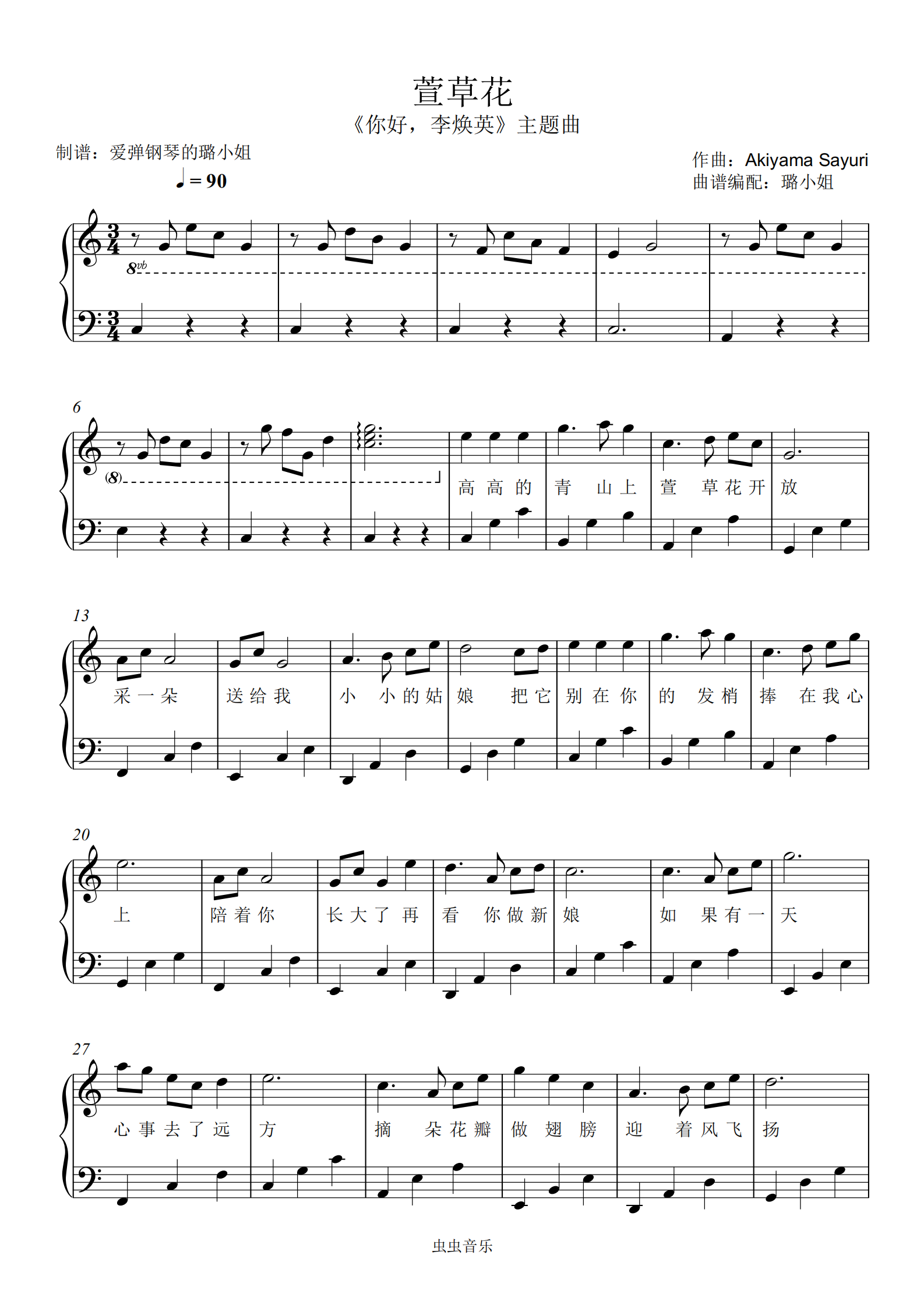 萱草花c大调 最抒情版本 -附歌词钢琴谱-虫虫钢琴