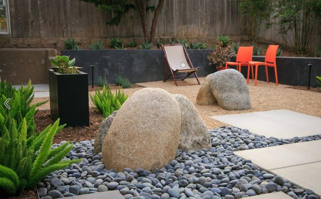 灰色黑色鹅卵石椭圆砾石接下来请您看一下庭院铺撒卵石后的实际效果
