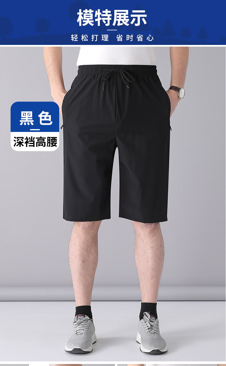 nob精品弹力棉六分裤夏季休闲短裤中老年松紧腰薄款短裤爸爸装多口袋