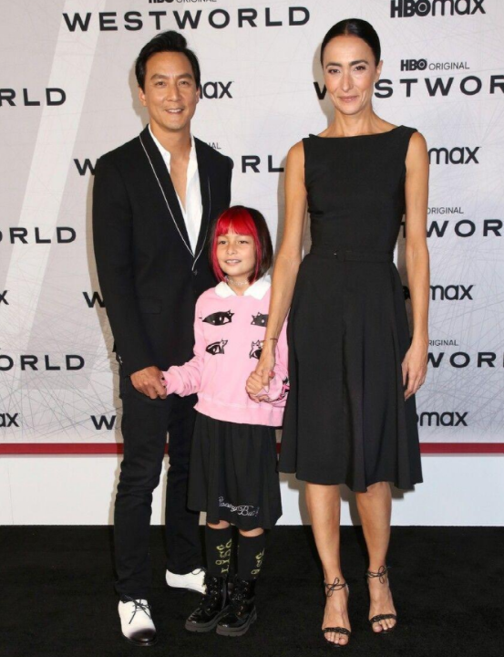 照片中,吴彦祖站在镜头中心,面带微笑看起来十分高兴,妻子lisa站在