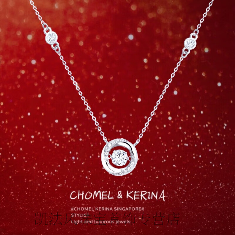 静风格 项链女镶施华洛世奇锆跳动的心锁骨链纯银气质吊坠生日礼物ja1