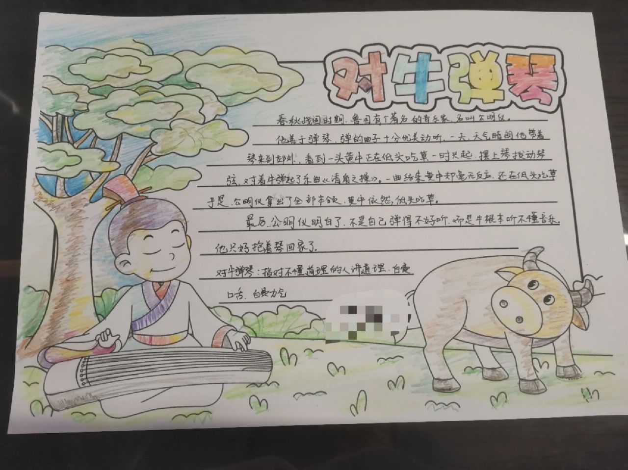 成语故事对牛弹琴手抄报. 爸爸妈妈齐合作.开学前的前一晚.