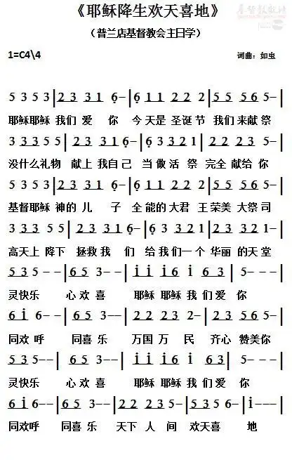 下载《耶稣降生欢天喜地》-心港歌谱