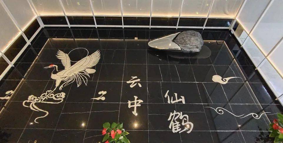 图片中水池底的字与logo,是由鹅卵石摆成.