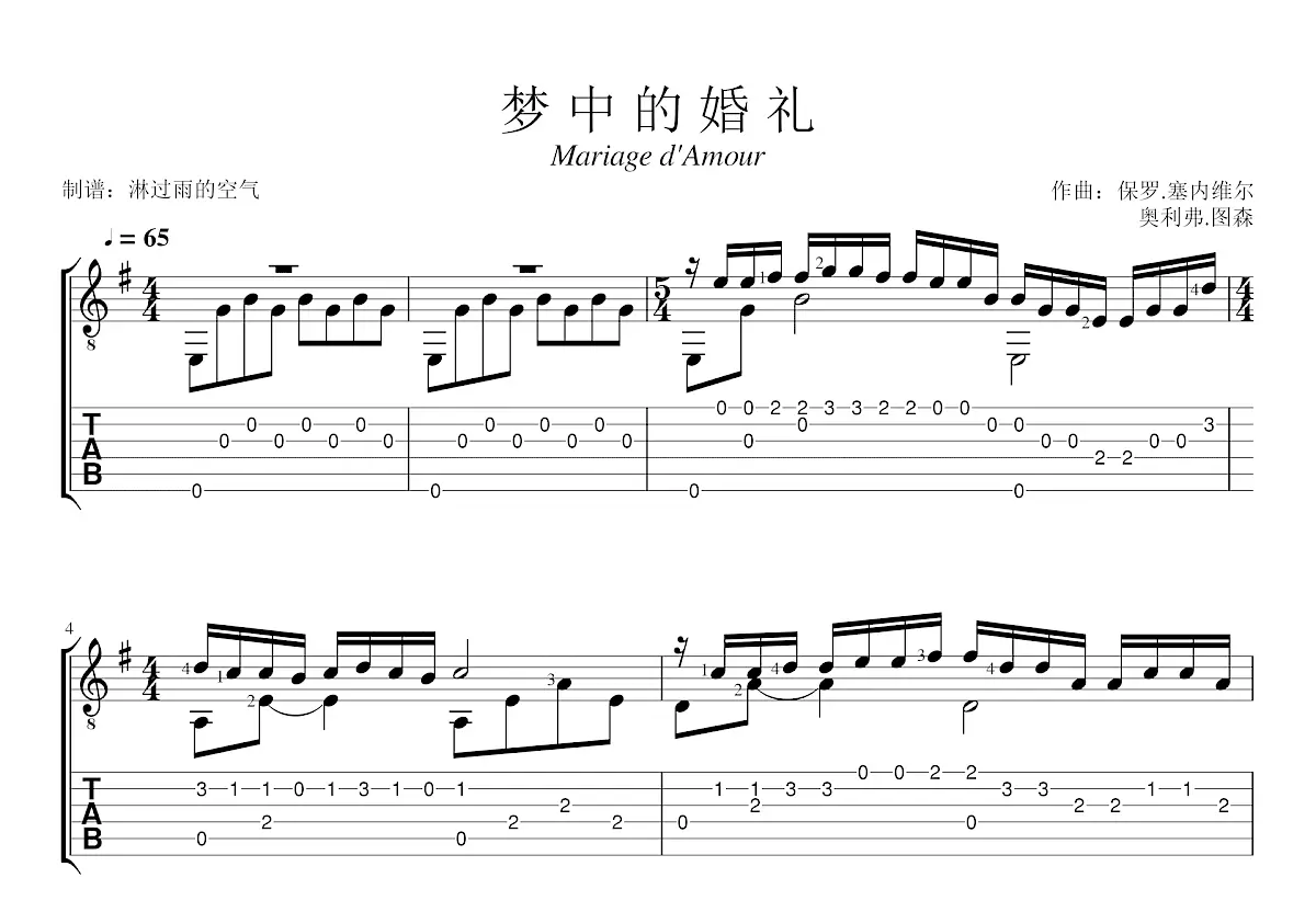 梦中的婚礼吉他谱_保罗·塞内维尔,奥立佛·图森_g调古典 - 吉他世界
