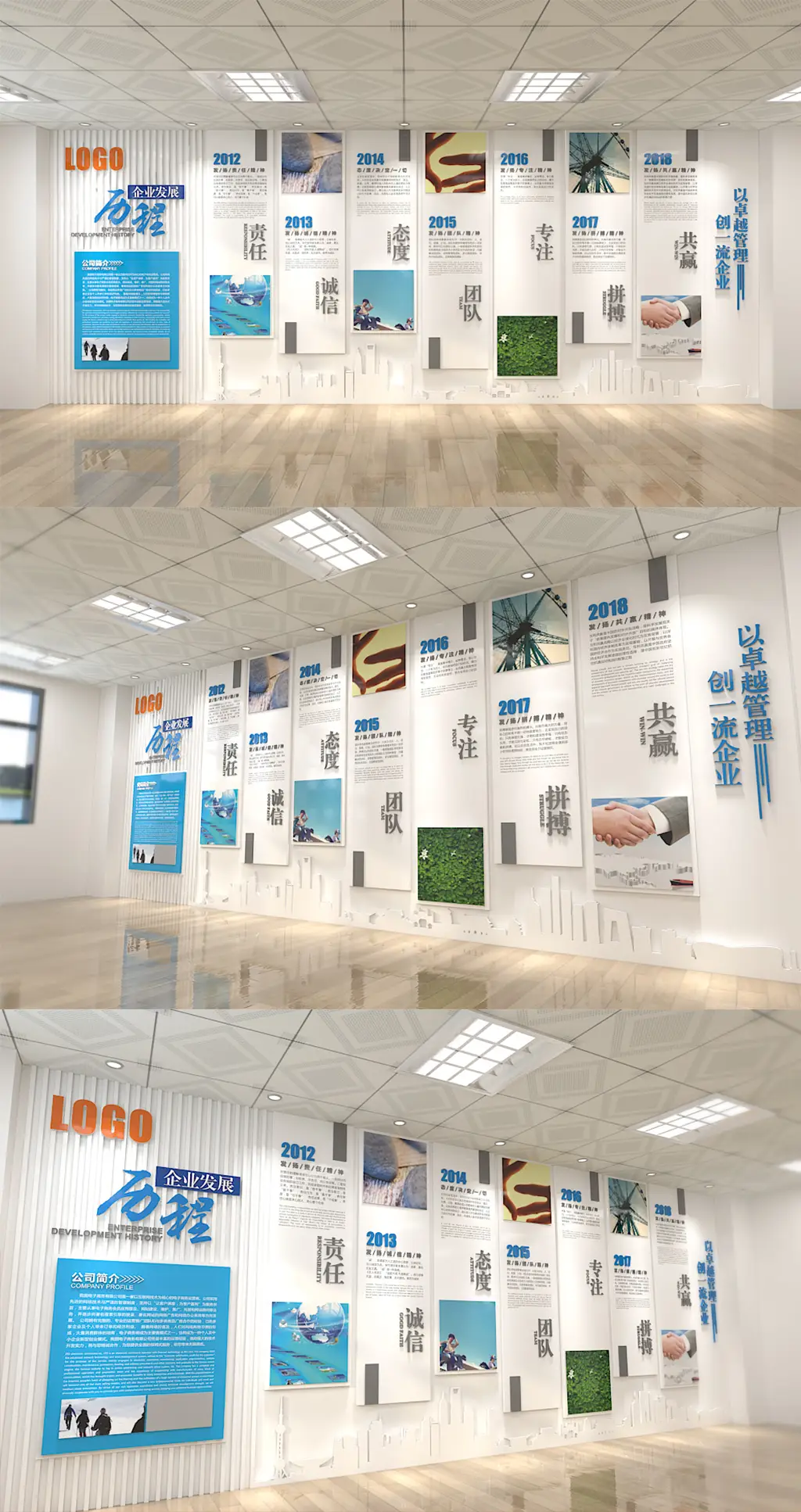 企业展板竖版文化墙蓝色立体公司简介文化墙模板下载-编号1970487