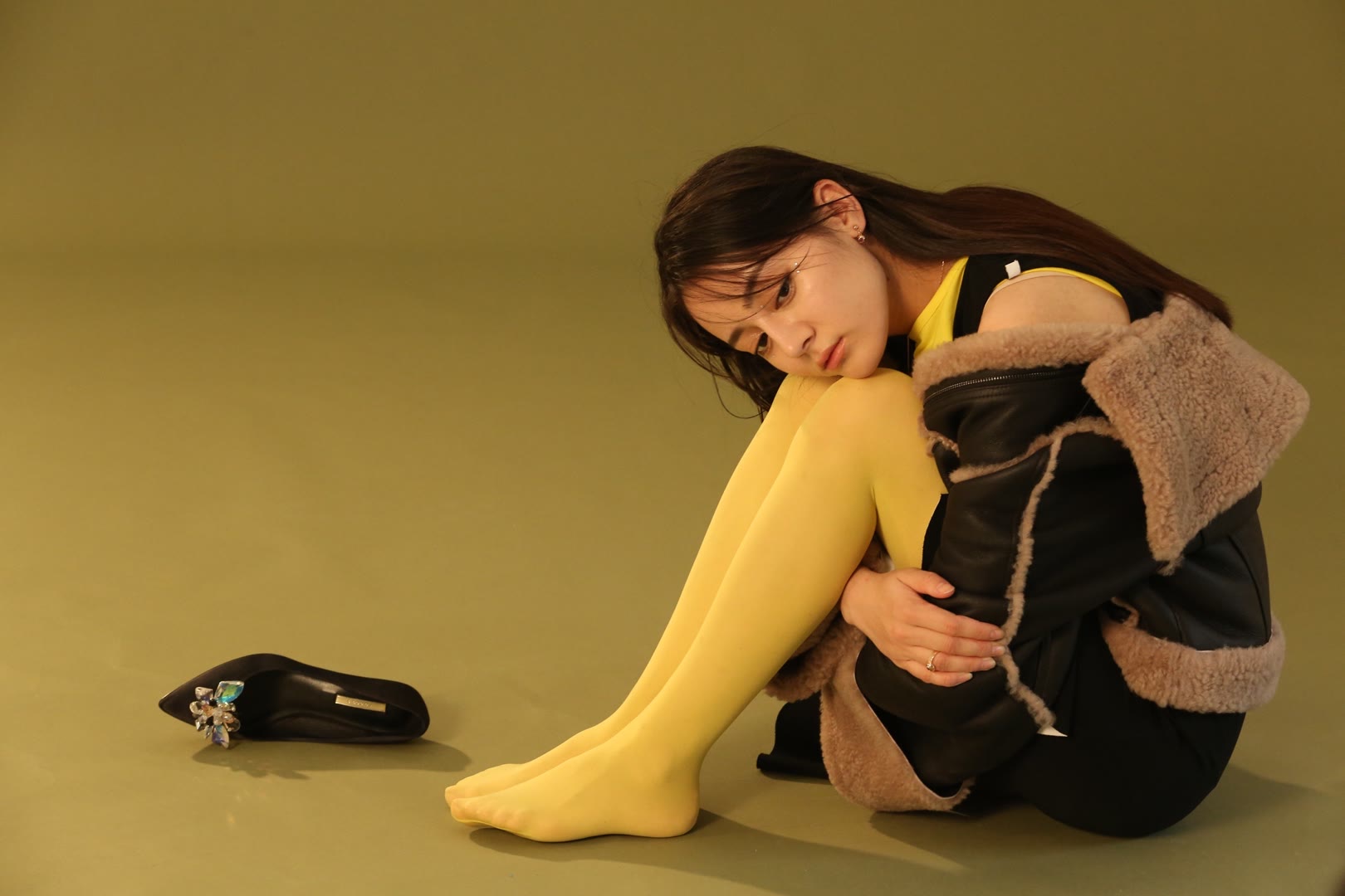 迪丽热巴罕见肉丝高跟