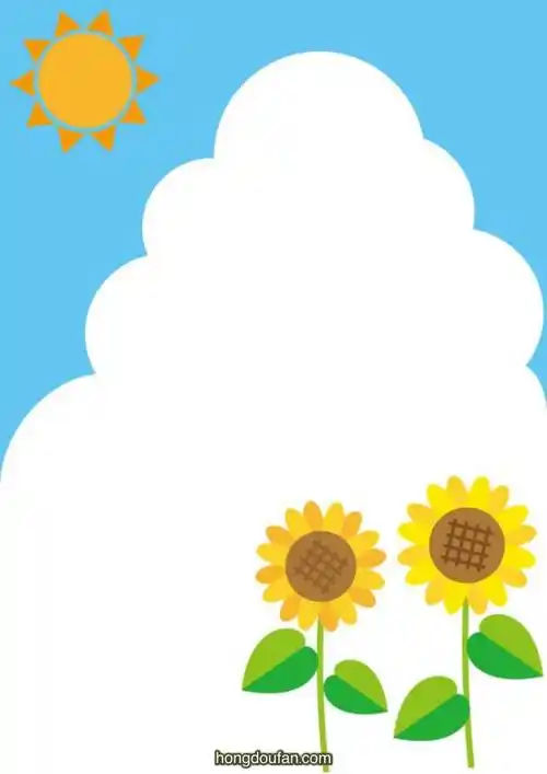 春天向日葵云朵边框a4背景纸张背景-红豆饭小学生简笔画大全