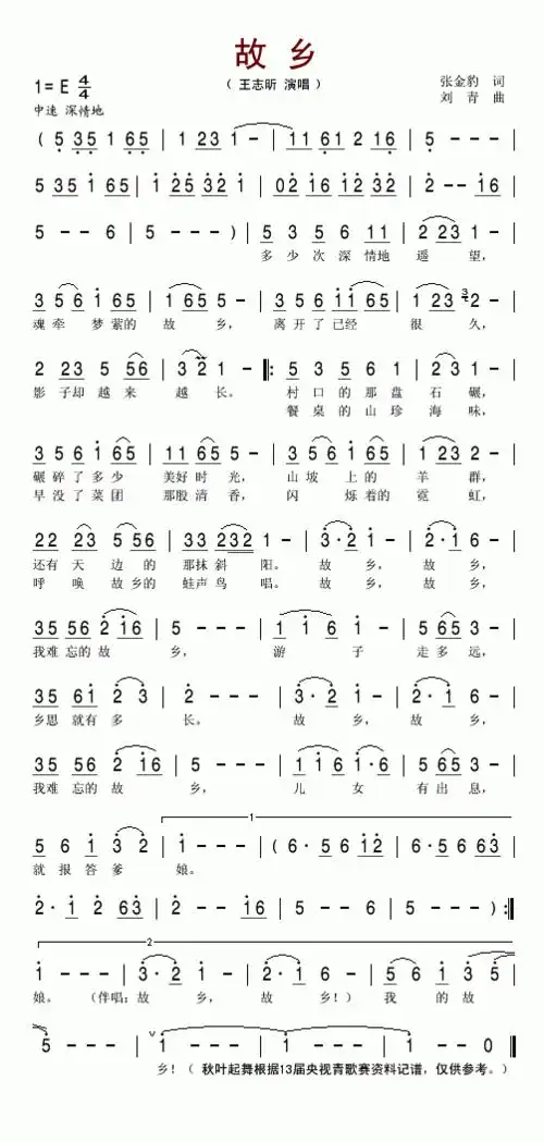 故乡(汪国真词 李庆辉曲)_美声谱_曲谱下载网