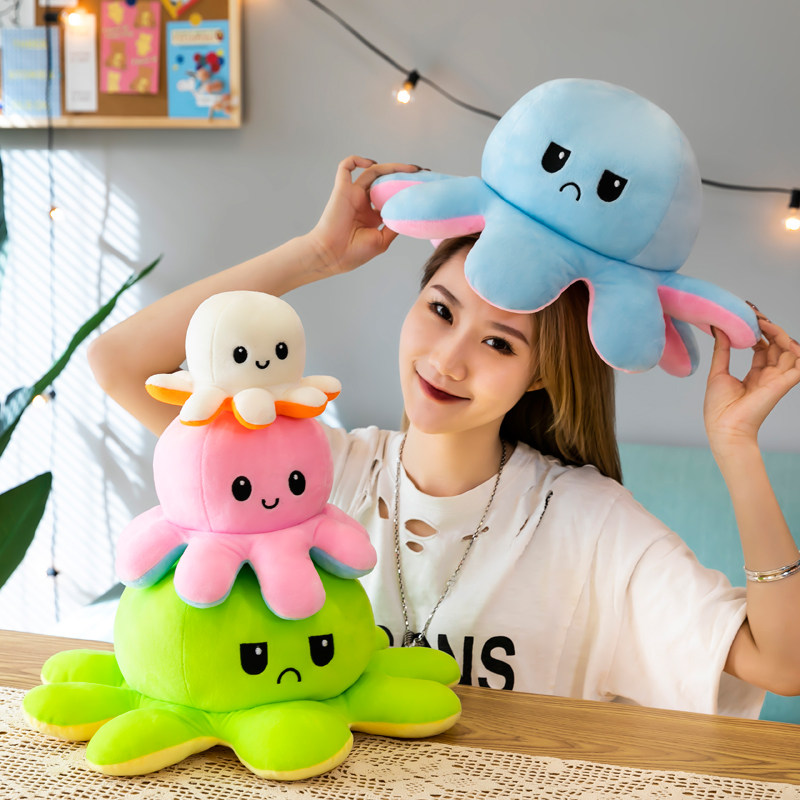 变脸小章鱼可爱变脸小章鱼双面玩偶大章鱼公仔可带头套翻转心情生气