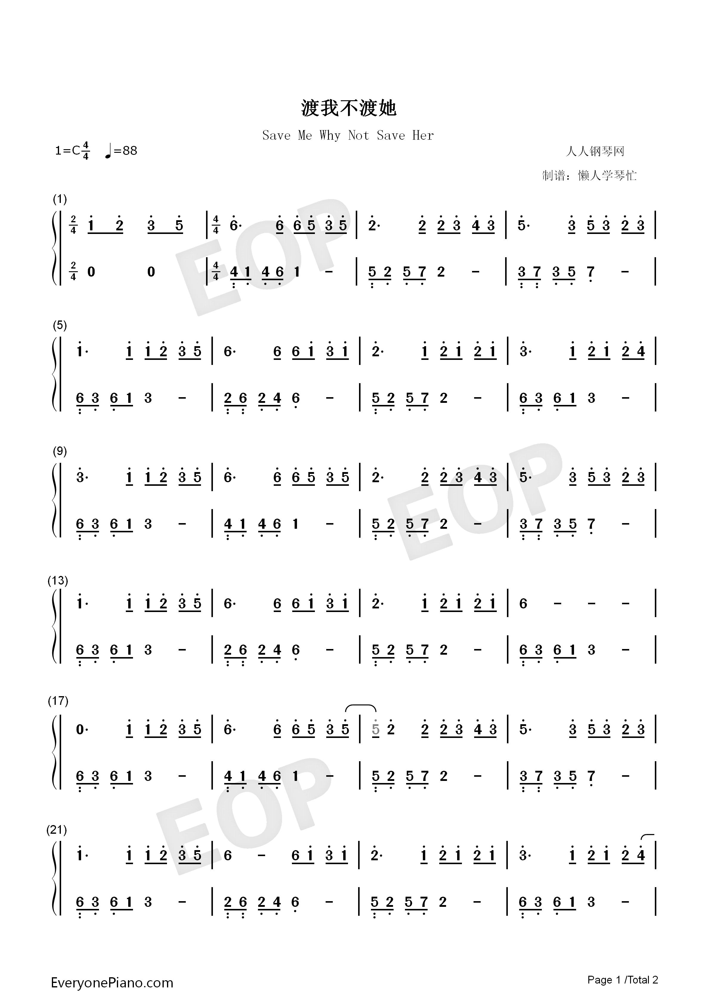 慢热-原调简单版-我不应该慢热着沉默假装冷漠一笑带过-抖音双手简谱