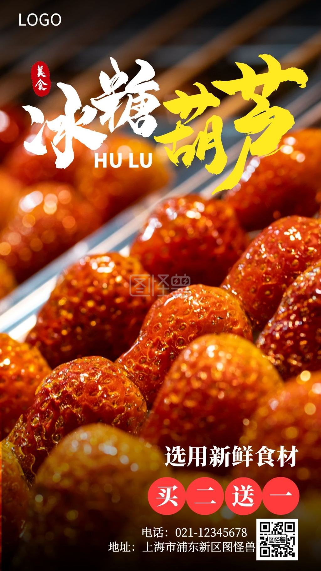 正版简约清新美食摄影图海报正版复古冰糖葫芦海报正版美味山楂促销