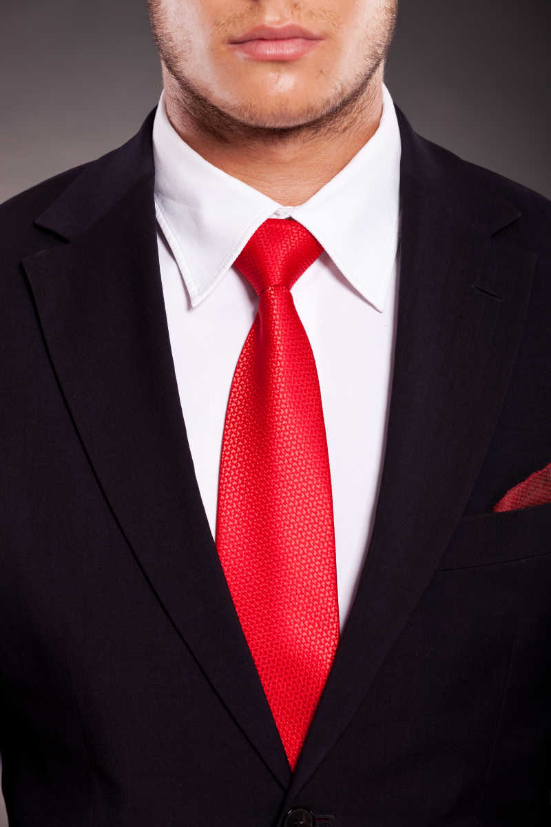 西装,白衬衫,红领带