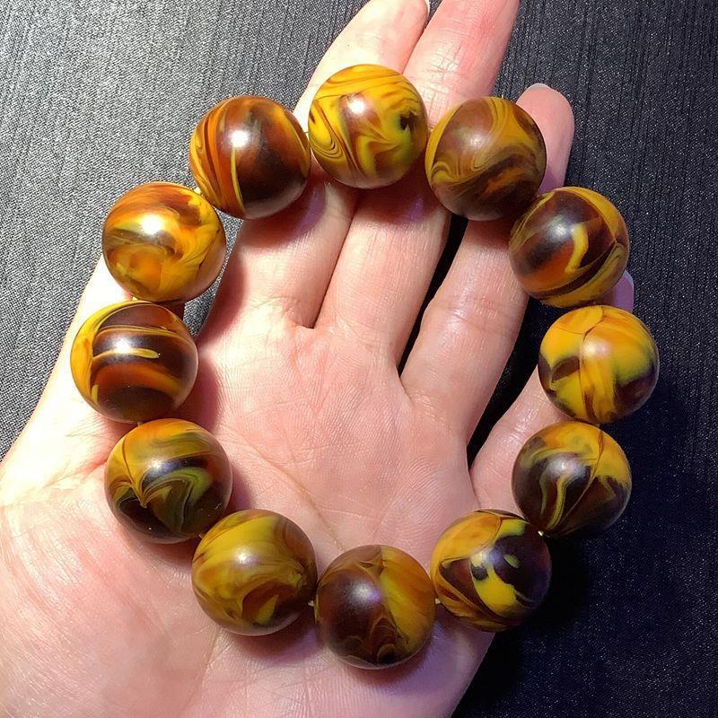 新款金丝蜜蜡香珀手串男女生士蜜蜡圆珠情侣手链蜜蜡圆珠文玩佛珠