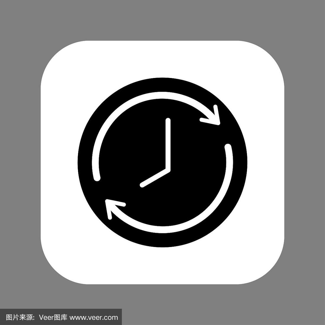 时钟线图标孤立在灰色背景.黑白简单手表.时间的概念.矢量图