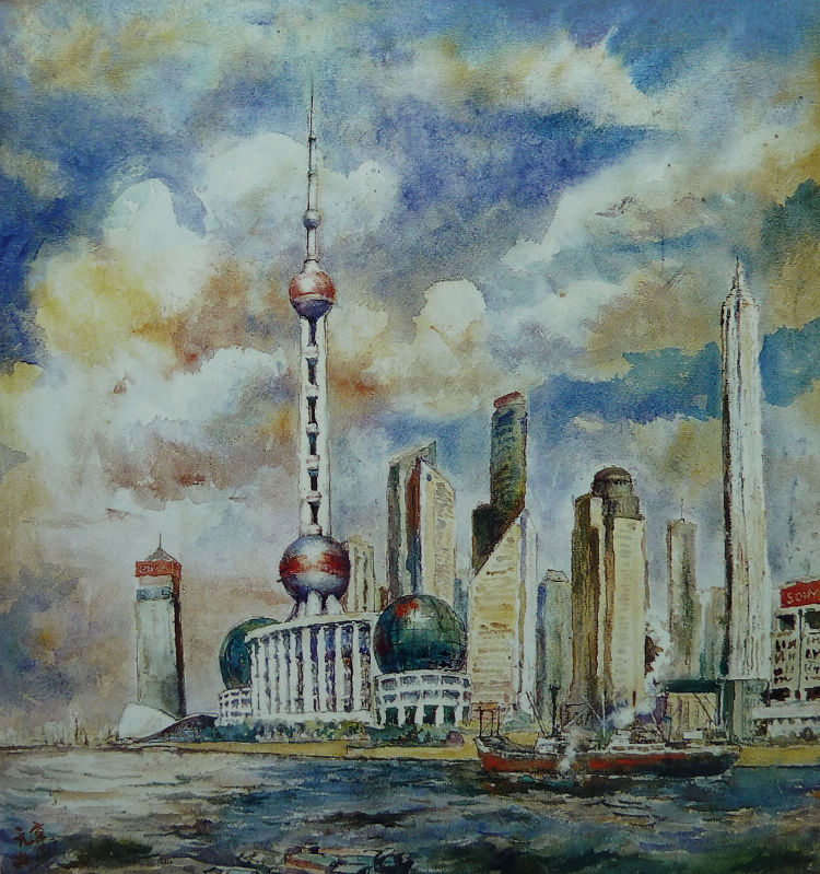上海城隍庙九曲桥_水粉/水彩原画【老上海老怀旧】_第1张_7788钱币网