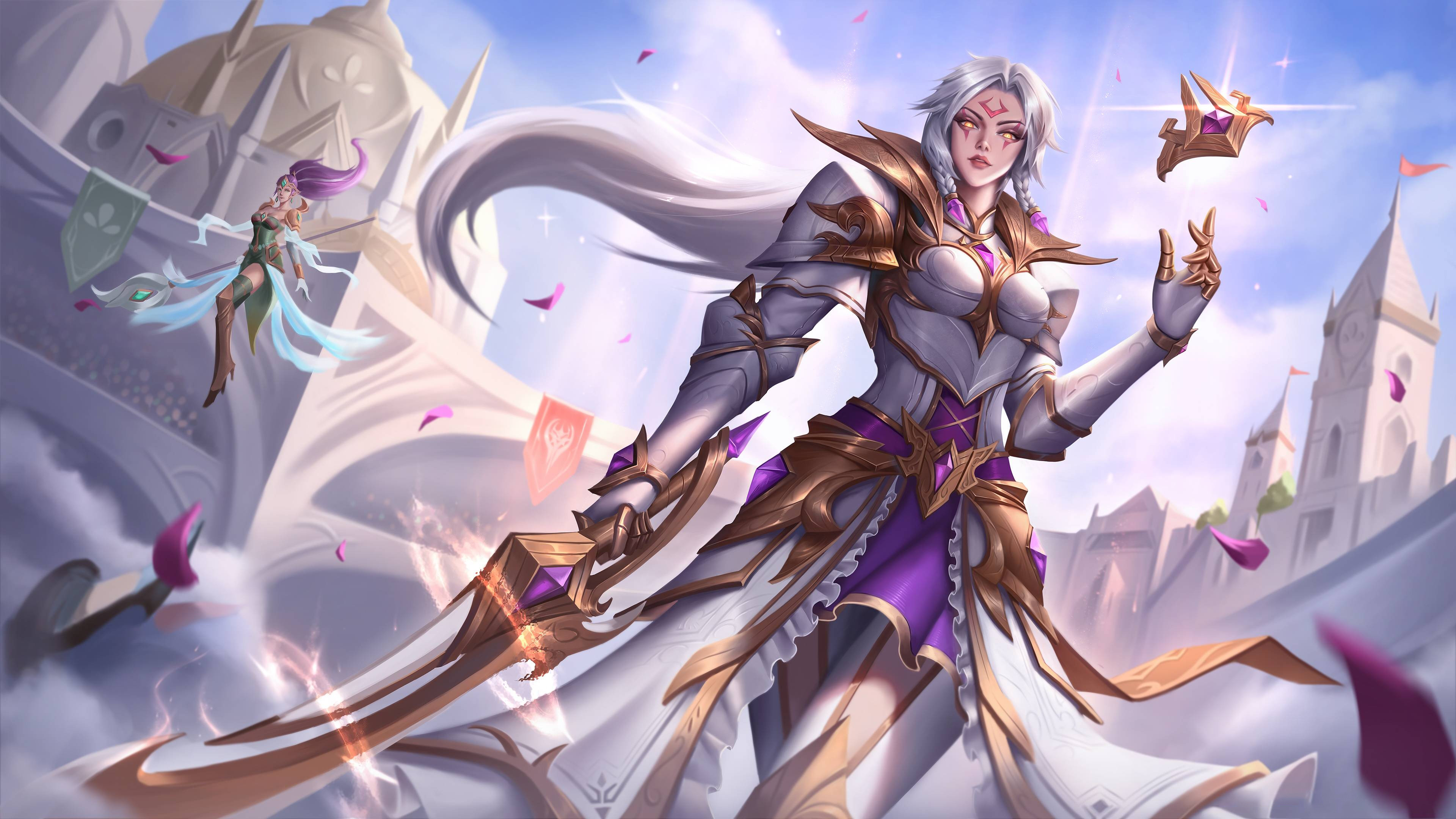lol英雄联盟皎月女神光明哨兵同人黛安娜4k电脑壁纸3840x2160