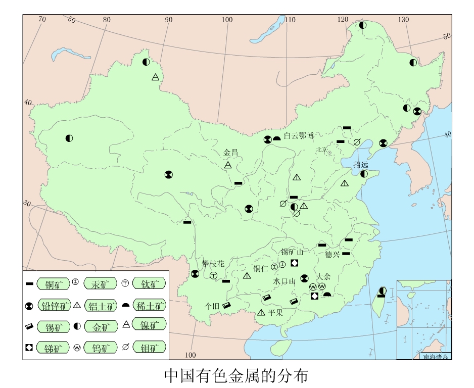 中国金属矿产分布图及特点