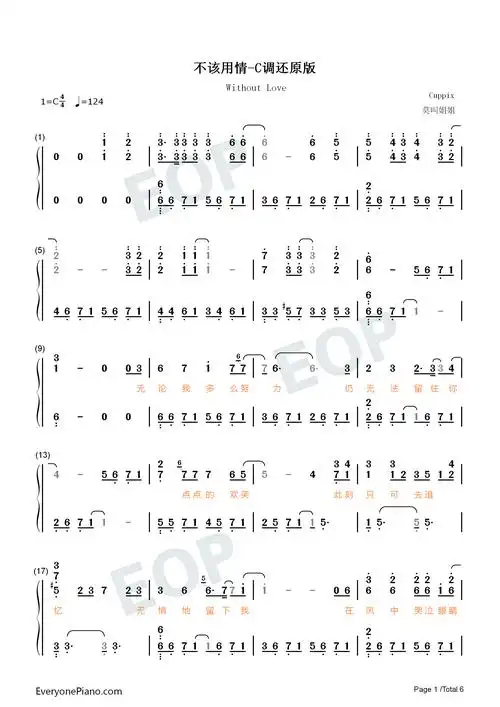 不该用情钢琴简谱-莫叫姐姐演唱1