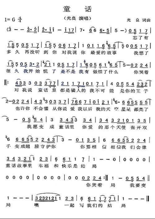 《童话》歌曲简谱 - 琴谱吧