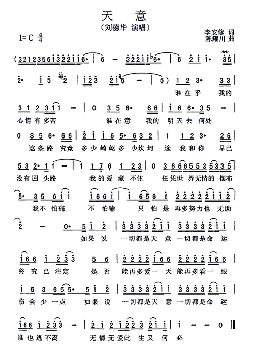 天意_刘德华_歌谱歌词_曲谱资料