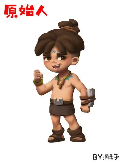卡通野人原始部落兽皮衣服q版男人综合模型蛮蜗网