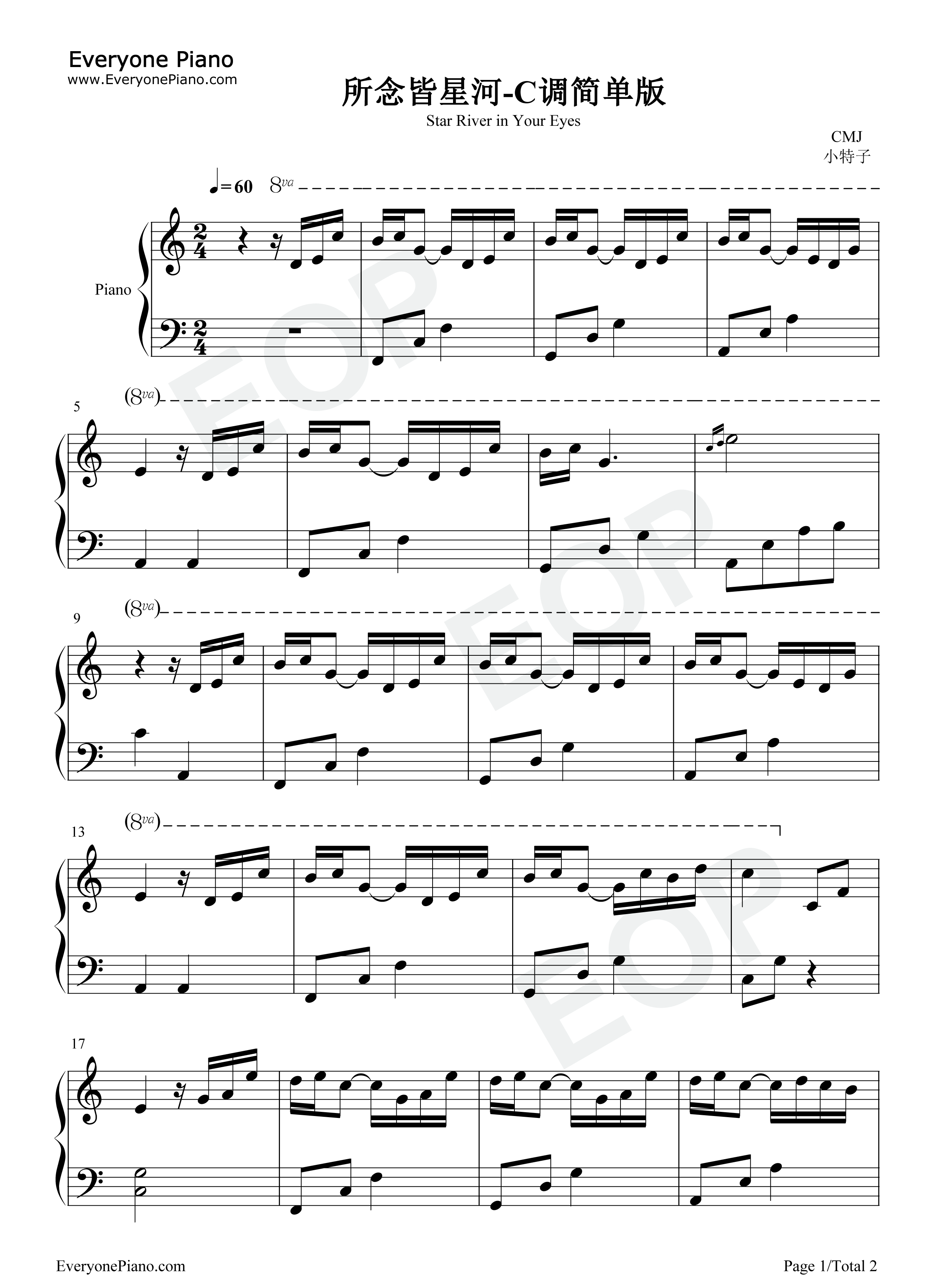 所念皆星河-c调简单版五线谱预览1