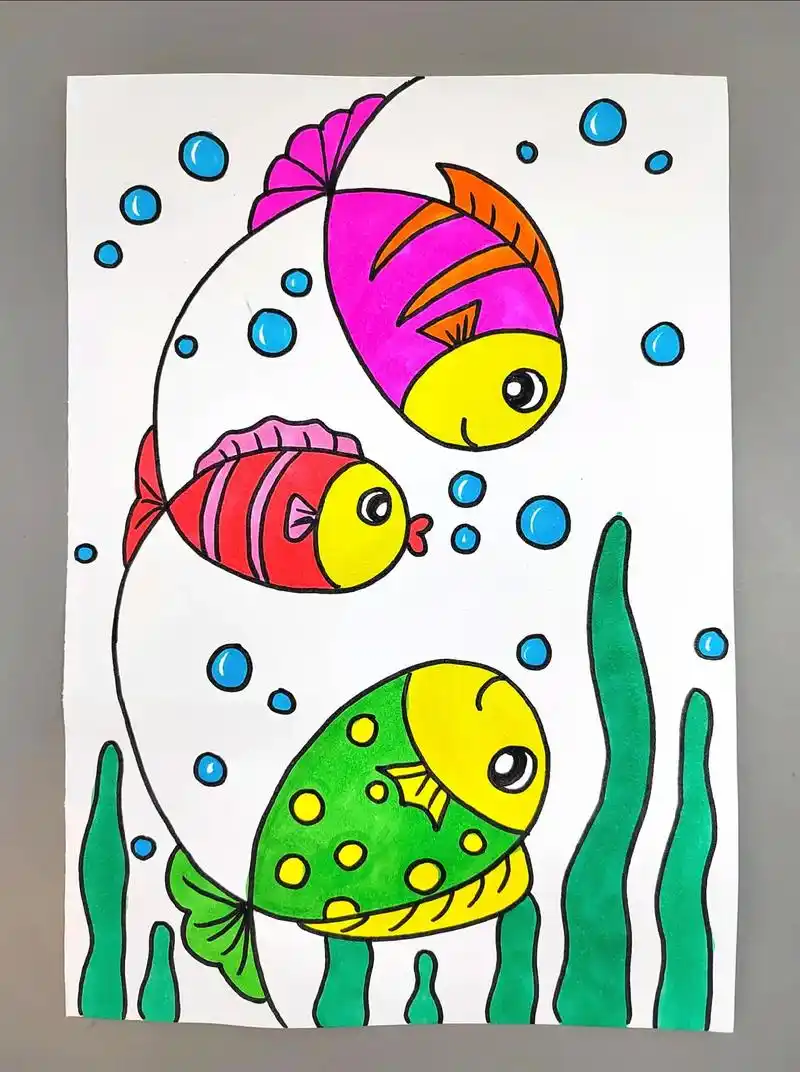教你用一根线条画可爱的小鱼,简单好看,快来试试吧#图文伙伴计 - 抖音