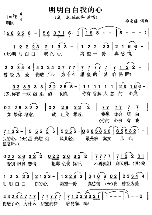 《明明白白我的心》简谱