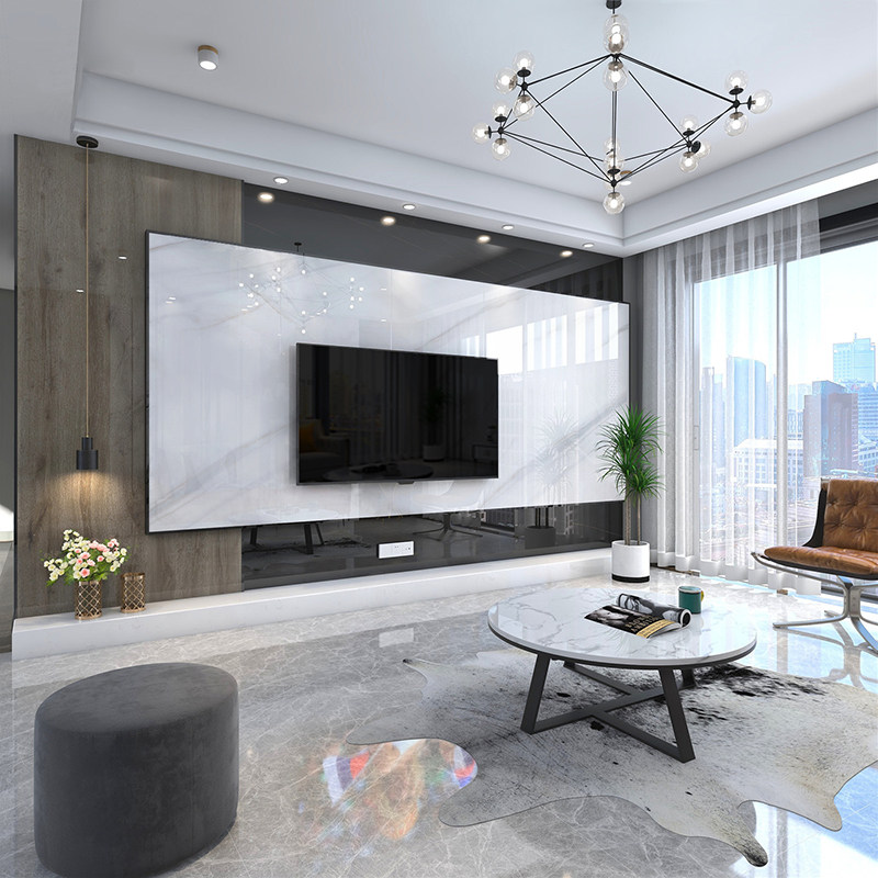黑白干练简约三居110平家庭餐厅餐桌灯具壁画装修效果图