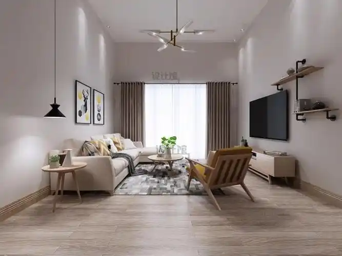 咖色墙面的客厅,简单而温馨.