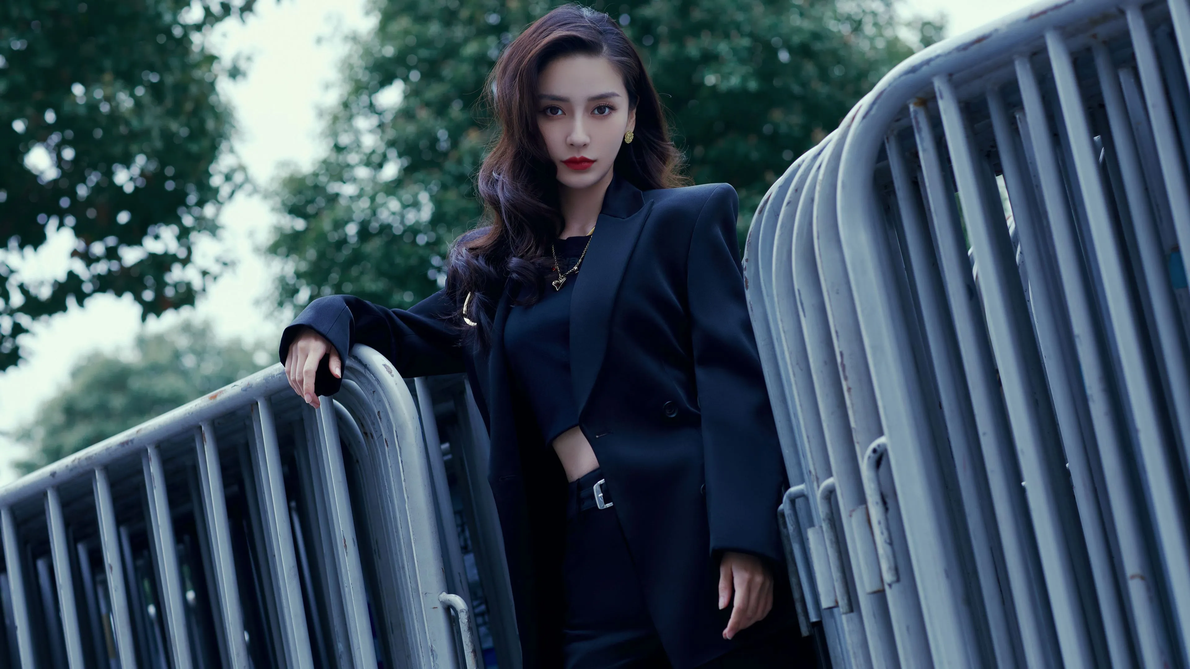 杨颖黑色西服套装着身化身高冷御姐展迷人小蛮腰户外写真-明星壁纸