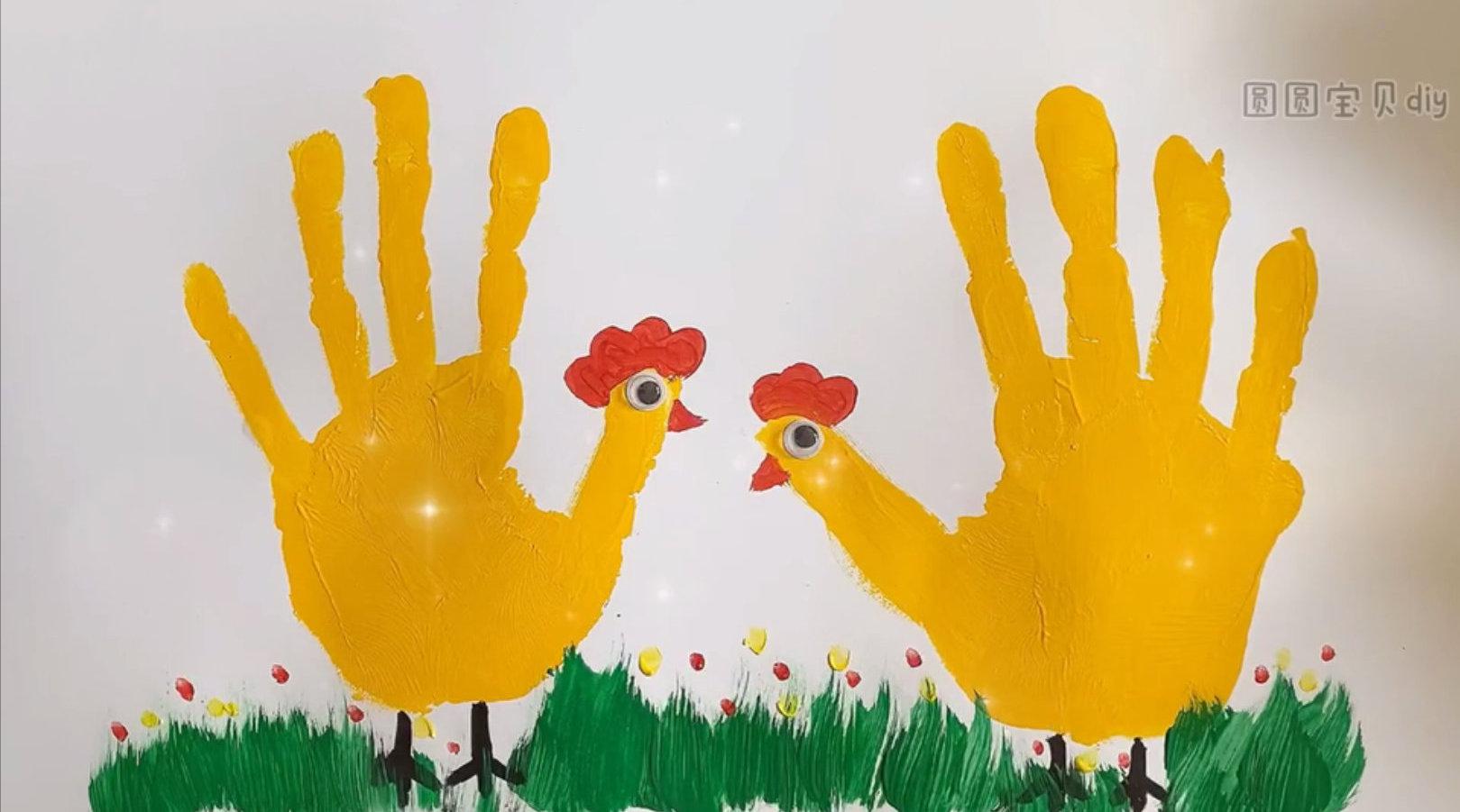 爸爸妈妈和小朋友一起玩呀,简单又有趣的手印画小鸡