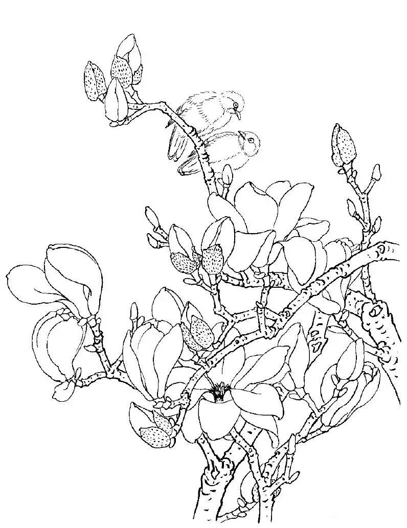 白描写生画谱:白描玉兰