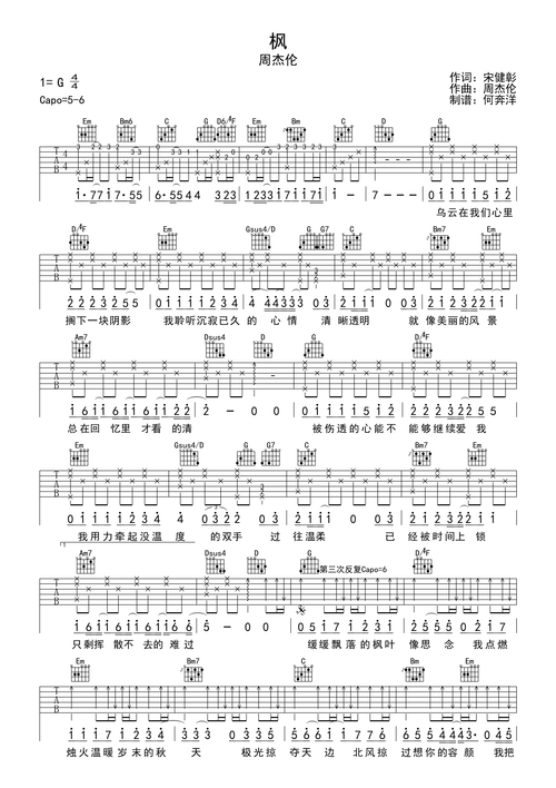 周杰伦枫吉他谱