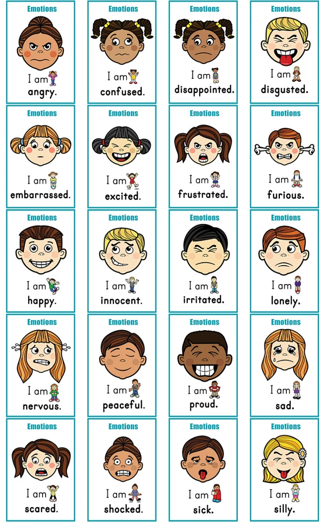 情绪感觉表情英文单词卡片幼儿儿童闪卡认知早教闪卡
