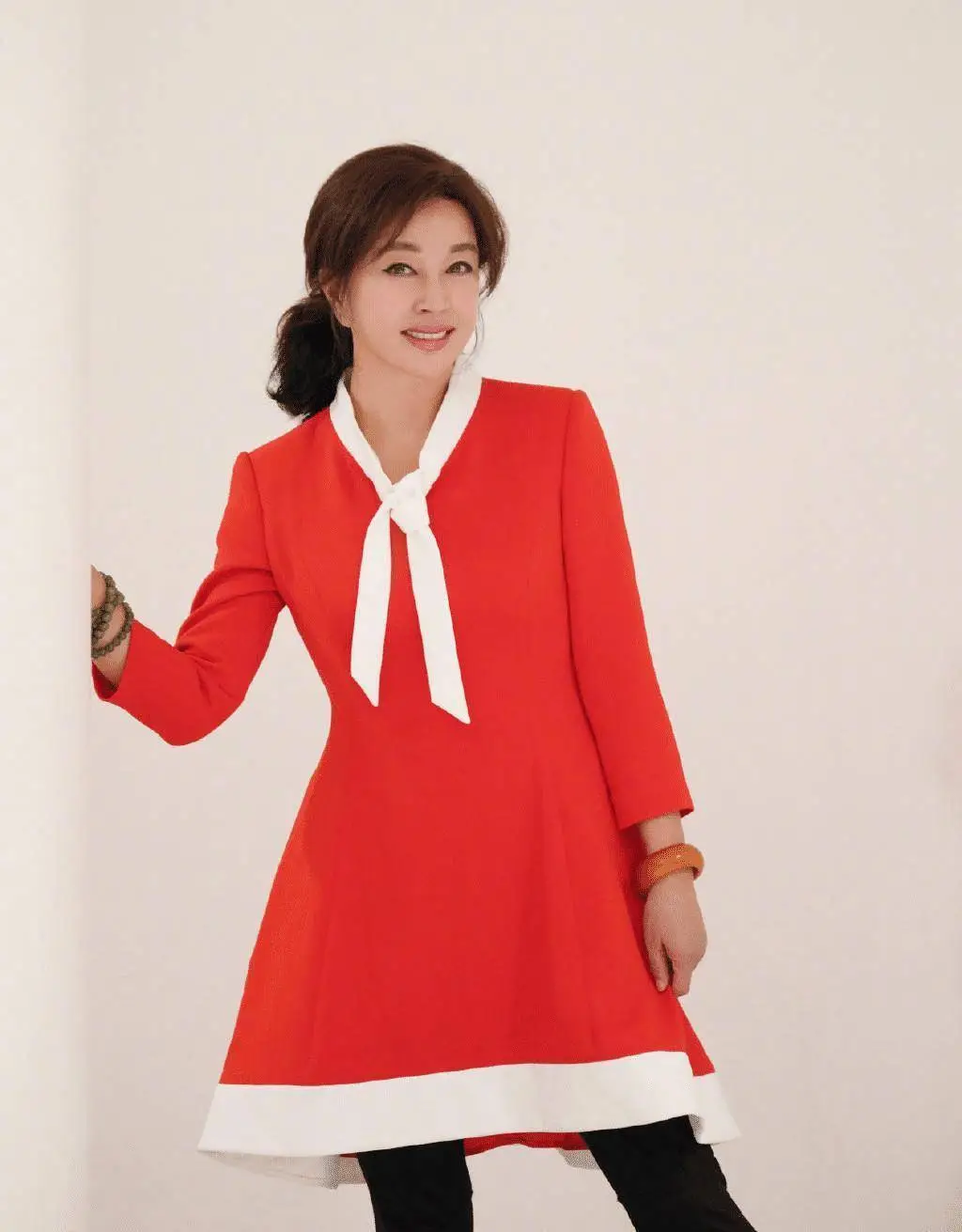 原创刘晓庆身穿白色衬衫搭配白色休闲裤,充满了仙气感,减龄效果满分