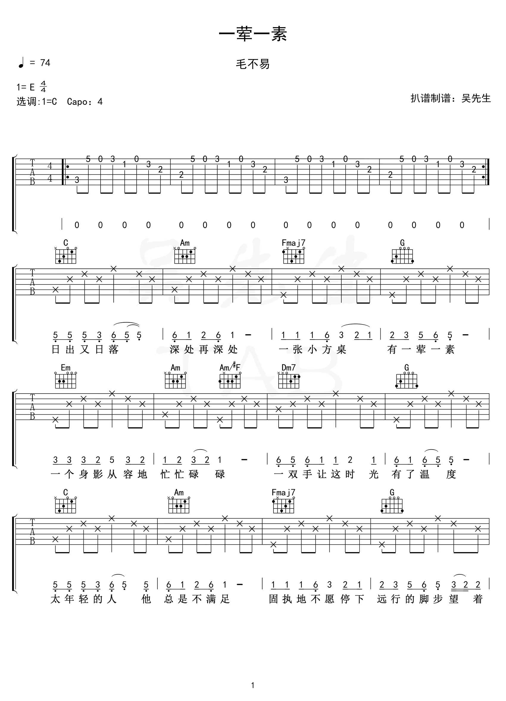 《一荤一素》吉他谱 毛不易#吉他谱 #乐谱 - 抖音