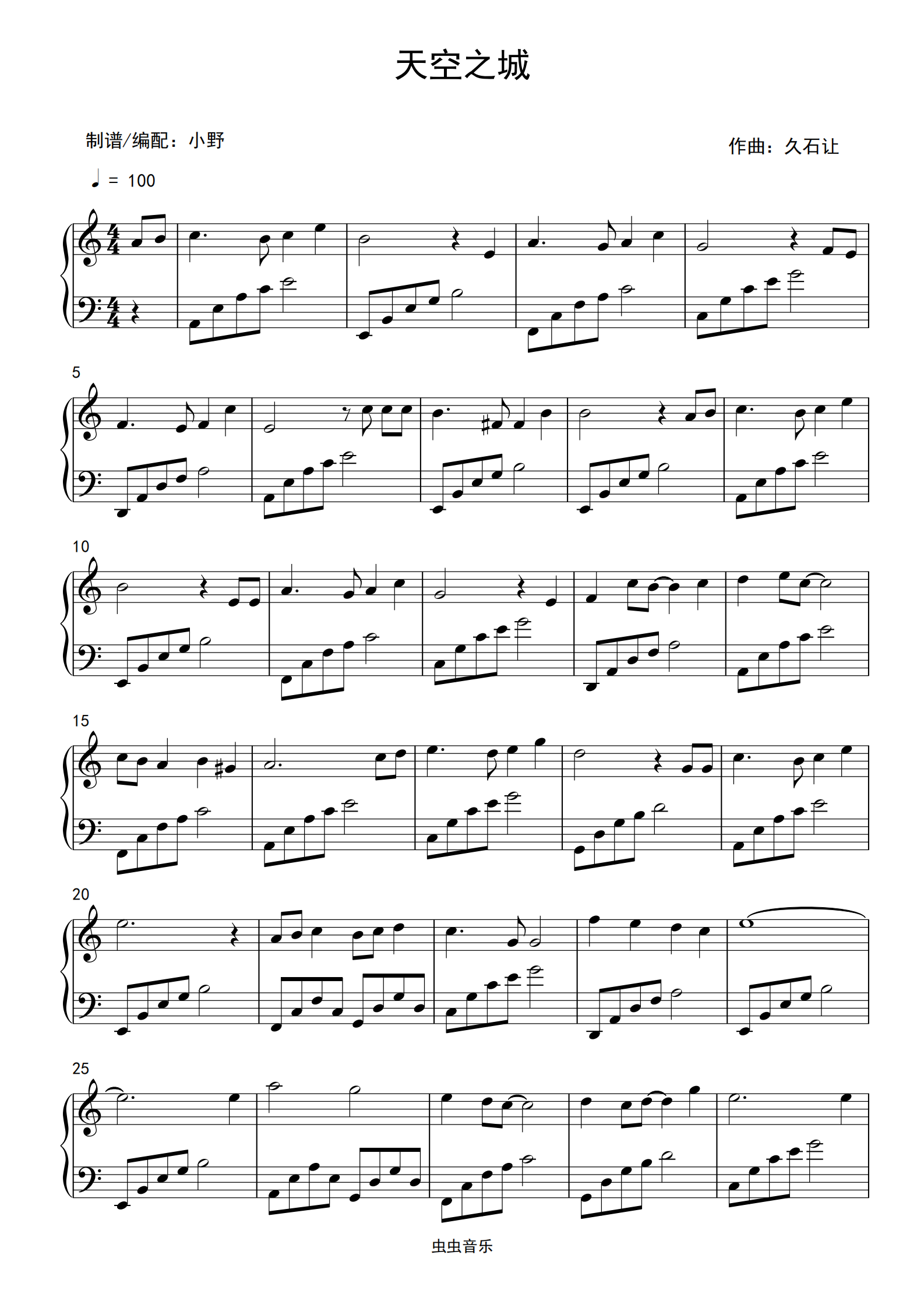 天空之城,天空之城钢琴谱,天空之城c调钢琴谱,天空之城钢琴谱大全