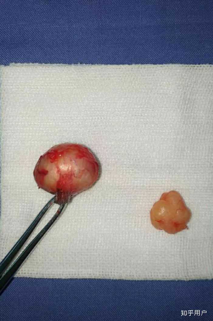 完整切除的皮脂腺囊肿(左),和脂肪瘤(右)