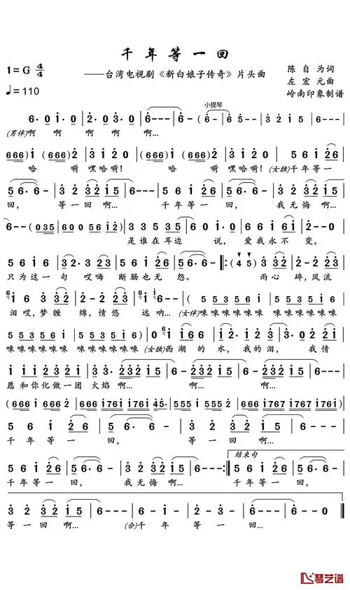 千年等一回(电视剧《新白娘子传奇》插曲)_简谱_搜谱网