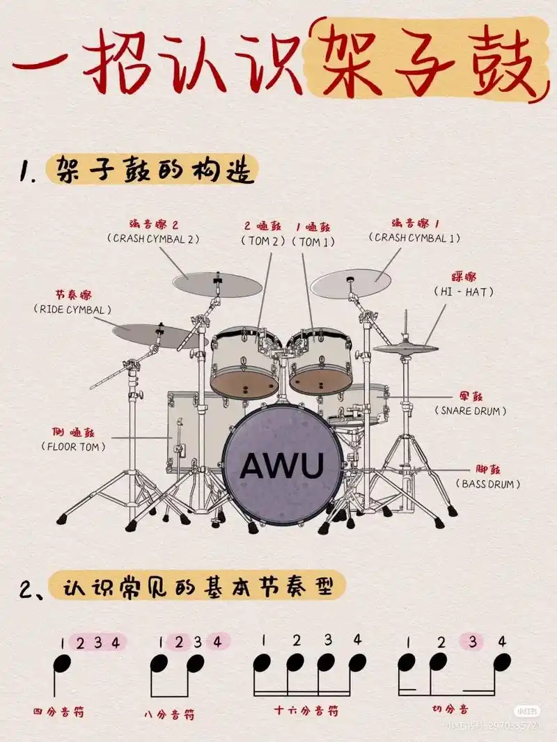 新学架子鼓看不懂鼓谱? 有这篇笔记就够了 架子鼓小白快学起来 - 抖音