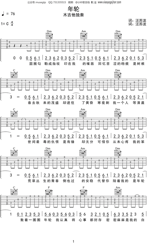 《年轮》吉他谱c调曲谱图片第1张